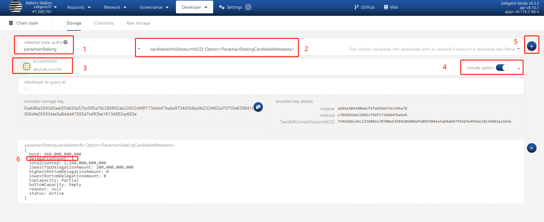 3. Choose candidateInfo(AccountId32): Option<ParachainStakingCandidateMetadata>