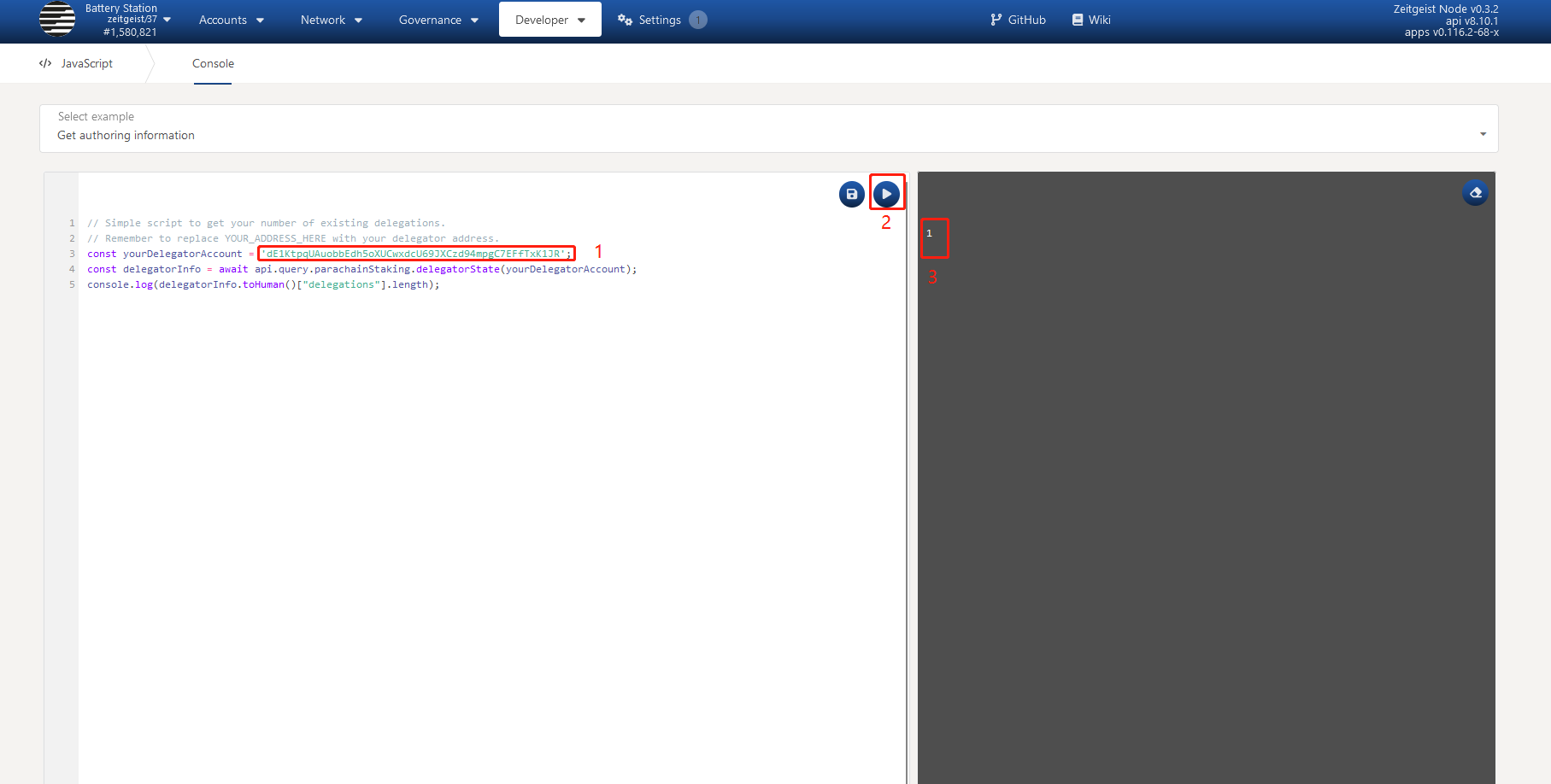 7. Enter the number of existing delegations from Get the Number of Existing Delegations (if you did not stake before, then enter 0)