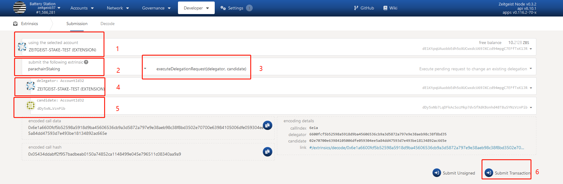 7.Enter the number of existing delegations from "Get your Number of Existing Delegations" (If you do not stake before, then enter 0)